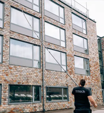 Vi putsar svåråtkomliga fönster på hög höjd. Miljömedvetet och smidigt.