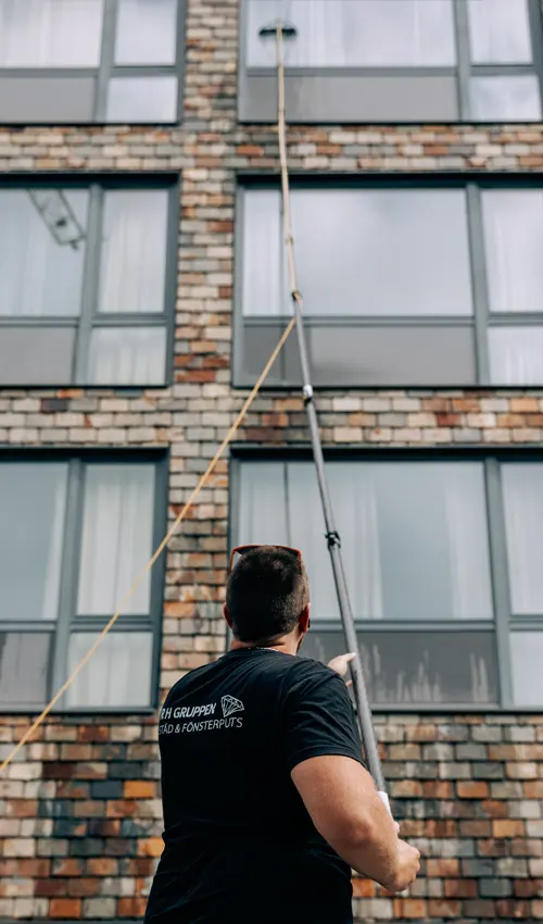 Om du har fönster ingen når så är det troligt att du behöver oss. Flervåningshus, höghus, glasfasader, skolor och vårdcentraler med stora fönsterpartier, restauranger och hotell i flera våningar. Även villaägare med högt belägna takfönster, lanterniner eller glasverandor som är svåra att nå själv. Överallt finns de, fönsterna.